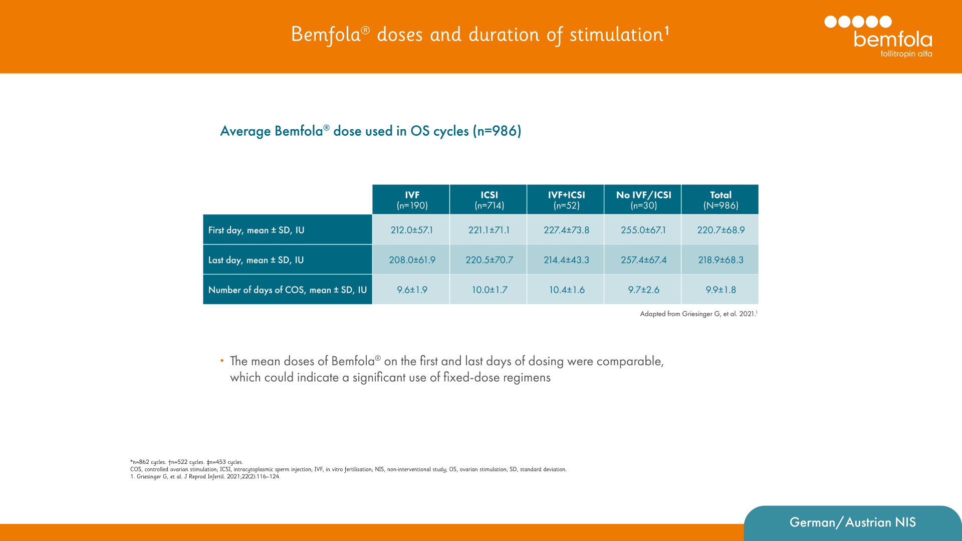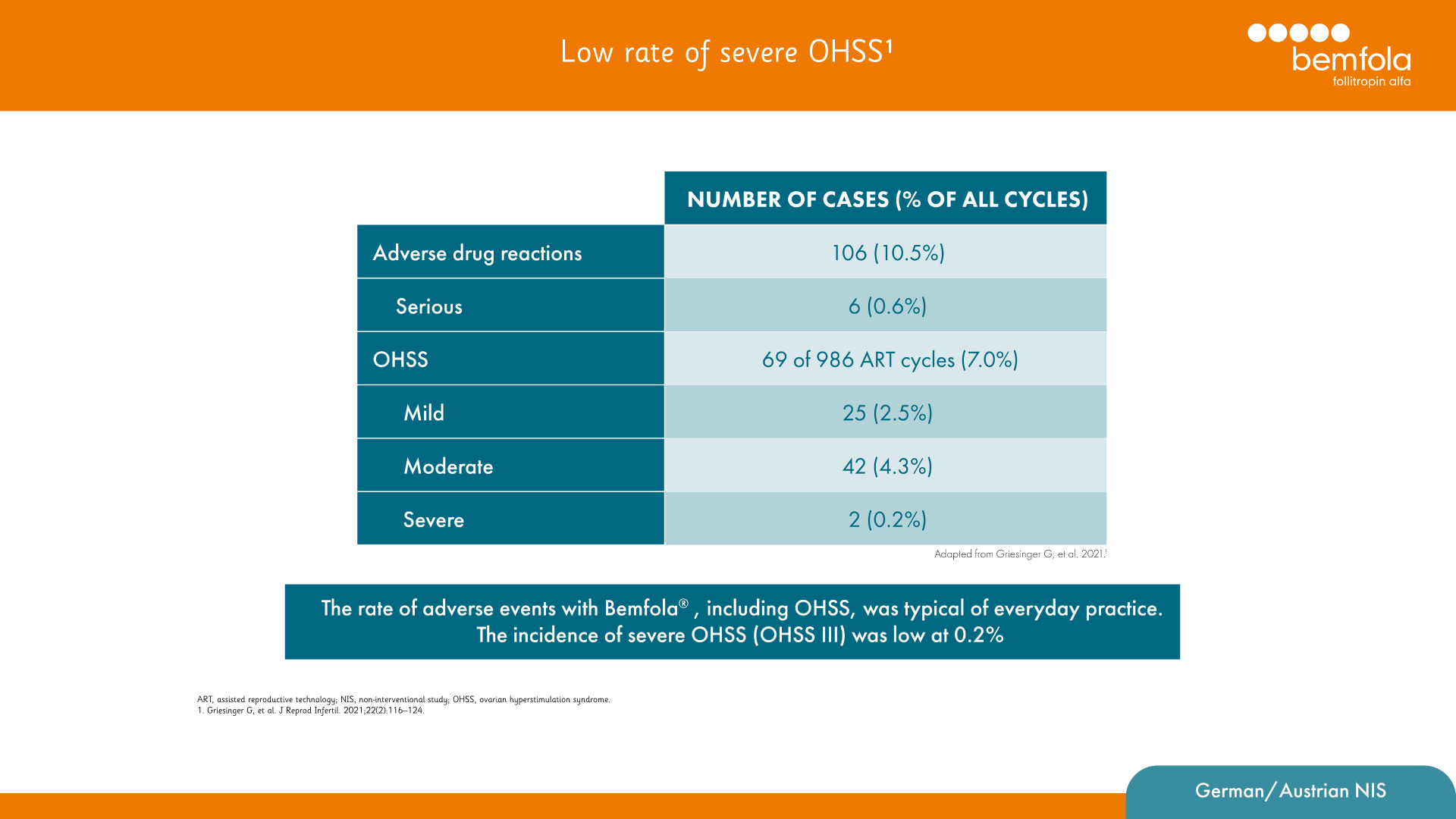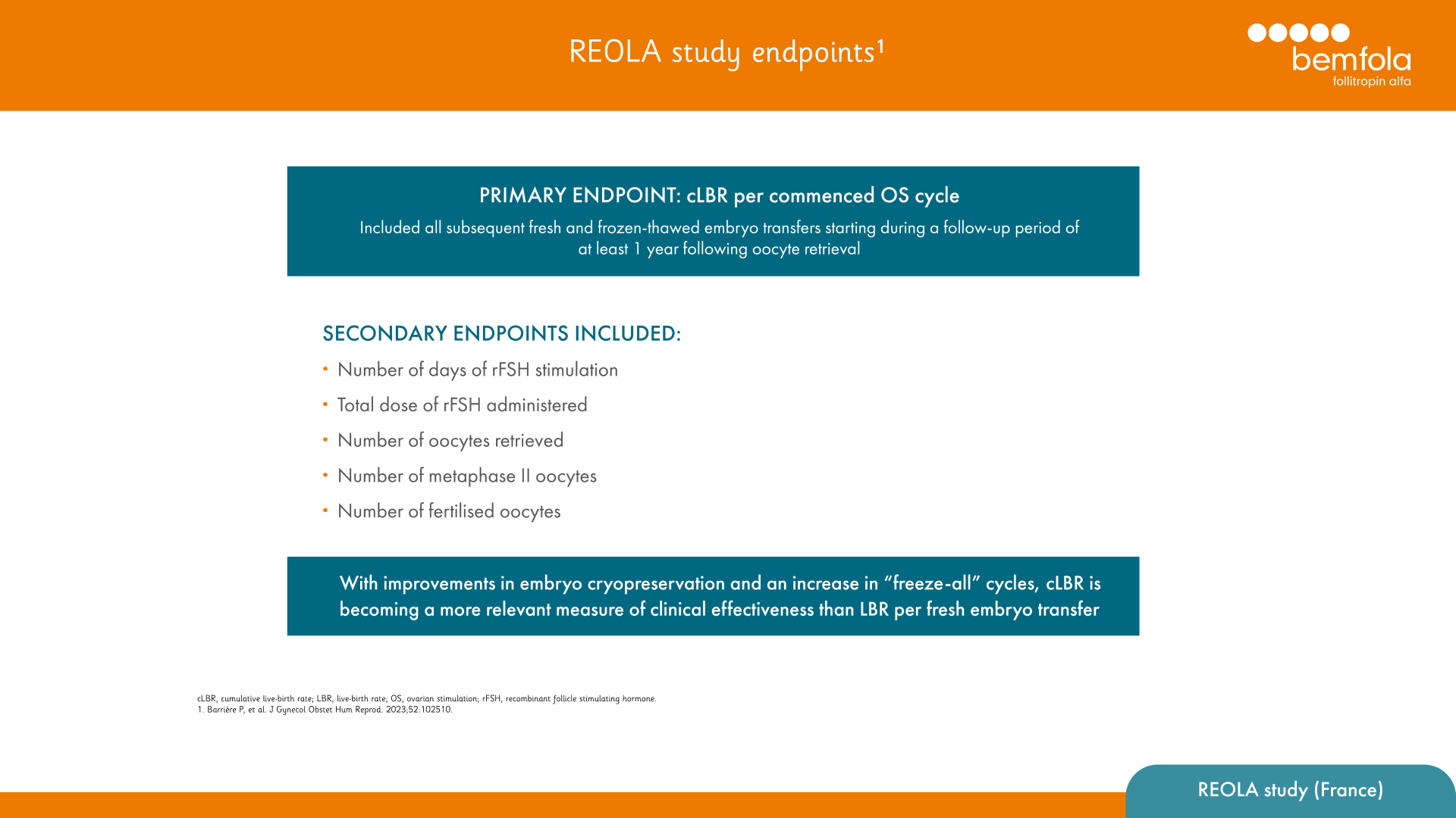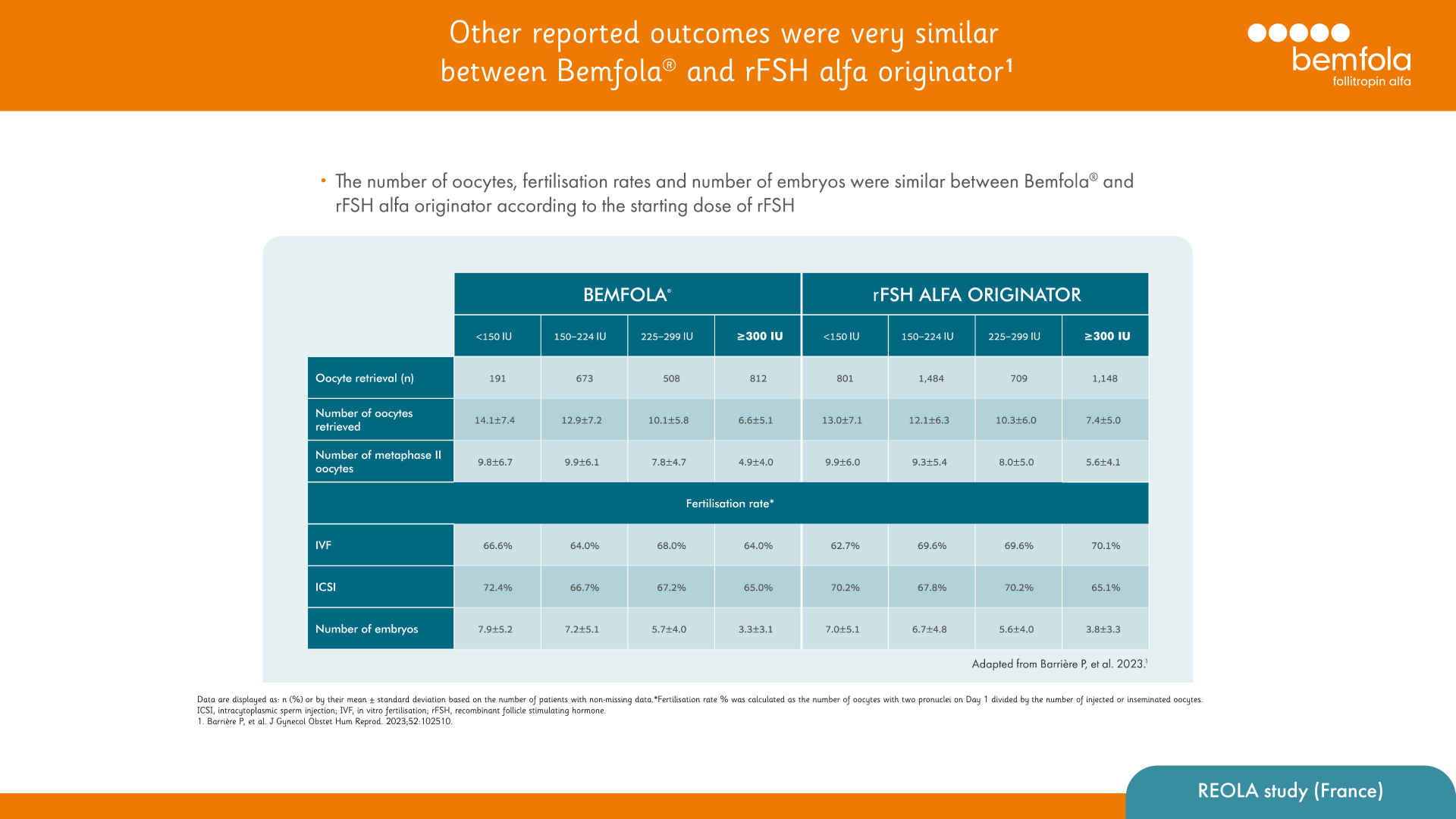 1. Griesinger G, et al. J Reprod Infertil.